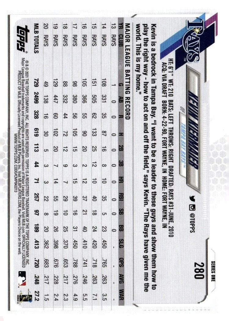 This is a nice example of a 2021 Topps #280 Kevin Kiermaier
