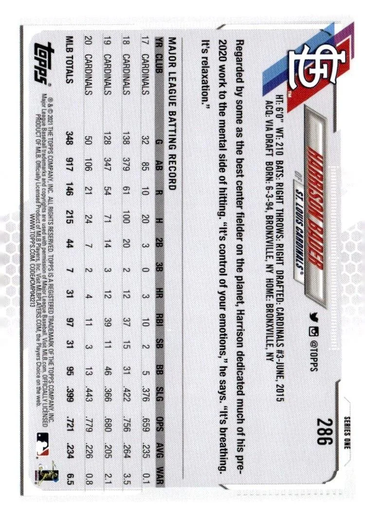This is a nice example of a 2021 Topps #286 Harrison Bader