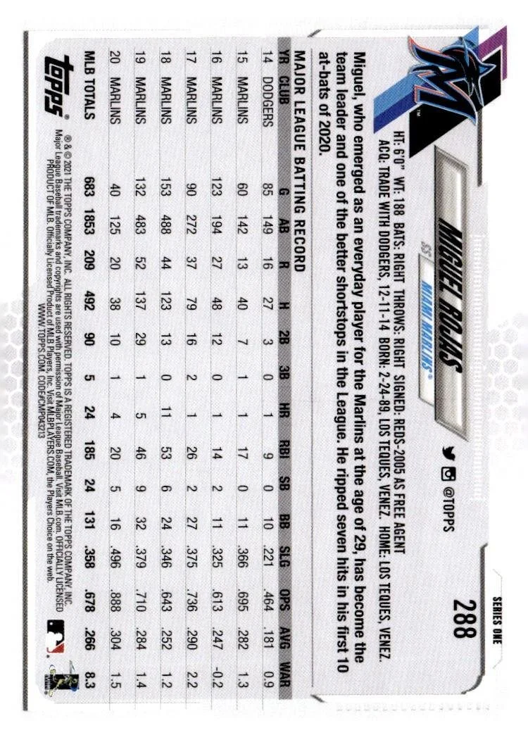 This is a nice example of a 2021 Topps #288 Miguel Rojas