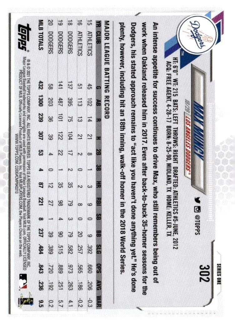 This is a nice example of a 2021 Topps #302 Max Muncy
