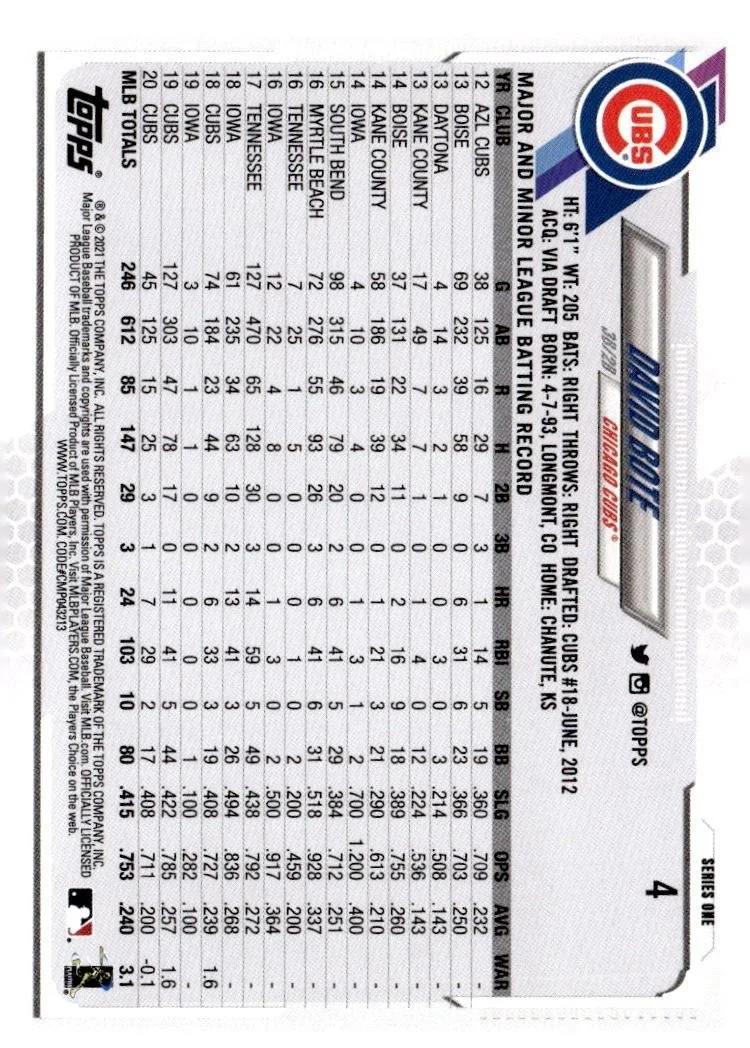 This is a nice example of a 2021 Topps #4 David Bote