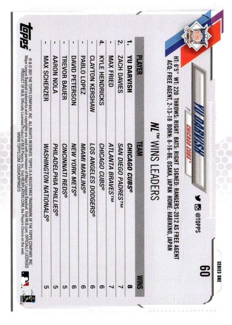 This is a nice example of a 2021 Topps #60 Yu Darvish