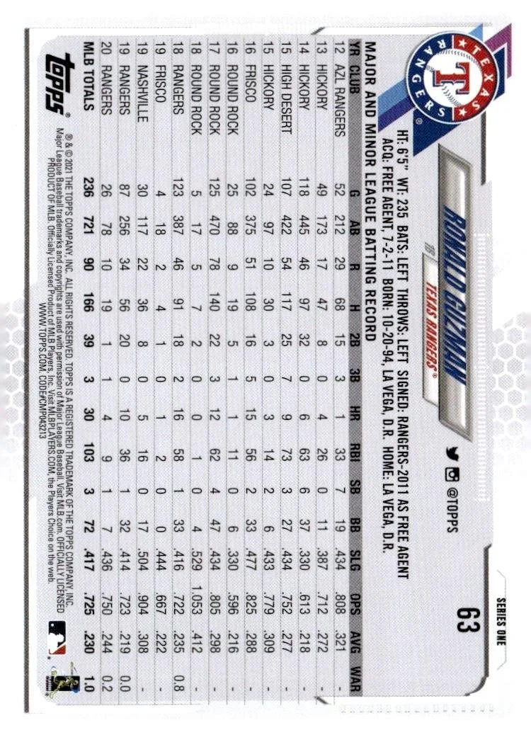 This is a nice example of a 2021 Topps #63 Ronald Guzman