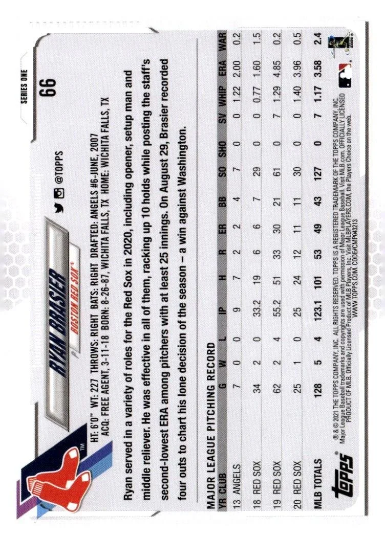 This is a nice example of a 2021 Topps #66 Ryan Brasier