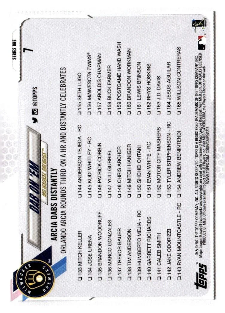 This is a nice example of a 2021 Topps #7 Dab on 'Em (Orlando Arcia)