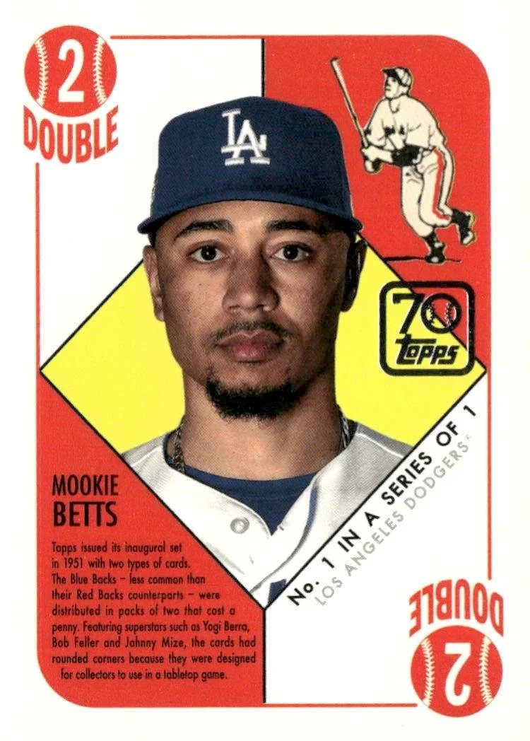 This is a nice example of a 2021 Topps #70YT-1 Mookie Betts 70 Years of Topps Baseball (Series 1)