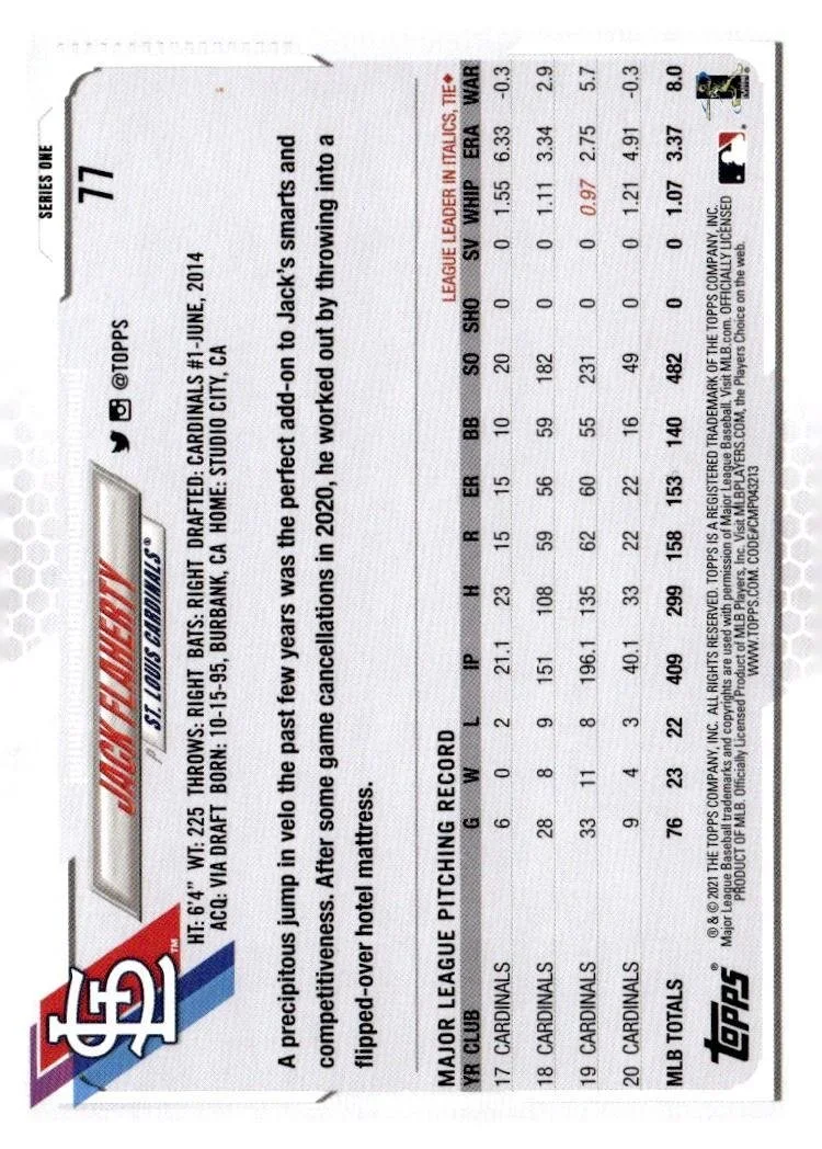 This is a nice example of a 2021 Topps #77 Jack Flaherty