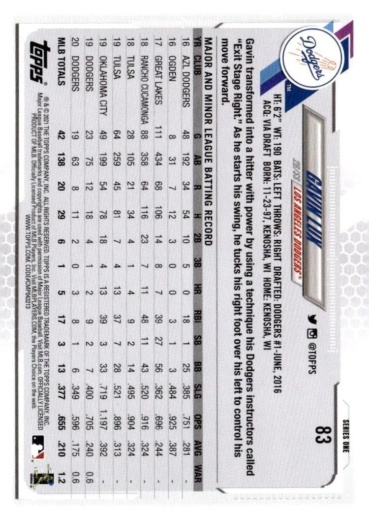 This is a nice example of a 2021 Topps #83 Gavin Lux