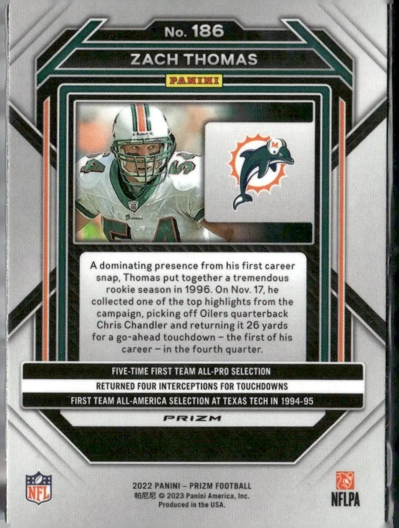 This is a nice example of a 2022 Panini Prizm #186 Zach Thomas