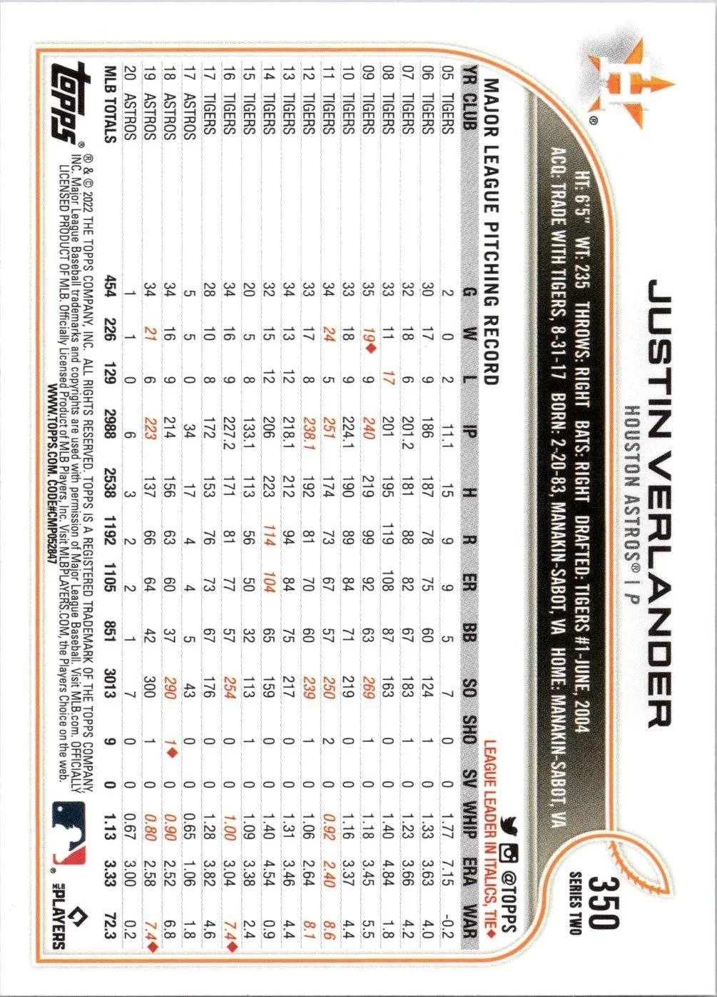 This is a nice example of a 2022 Topps #350 Justin Verlander