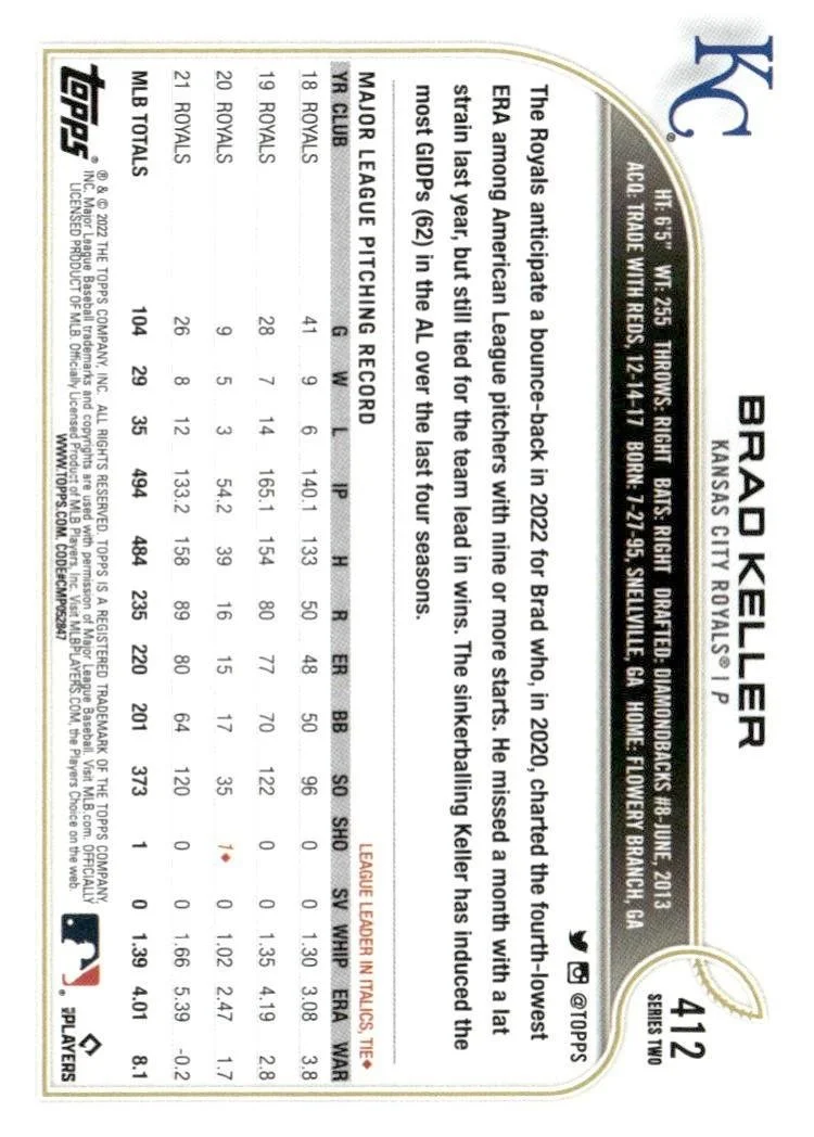 This is a nice example of a 2022 Topps #412 Brad Keller