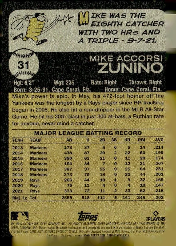 This is a nice example of a 2022 Topps Heritage #31 Mike Zunino