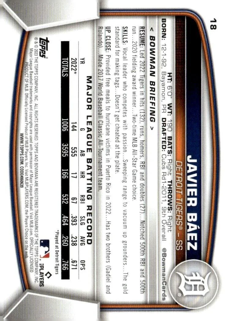 This is a nice example of a 2023 Bowman #18 Javier Baez