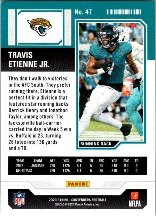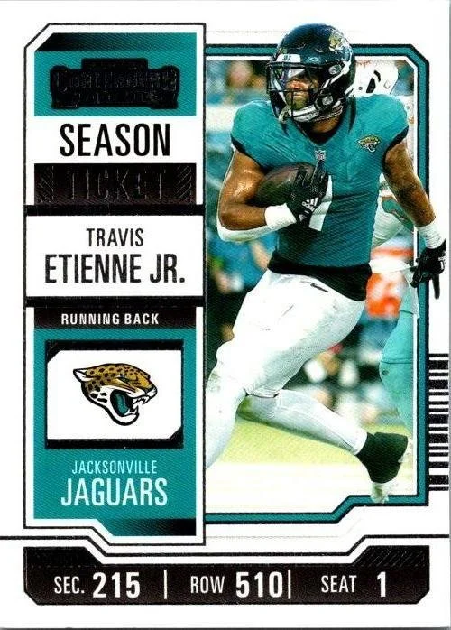 This is a nice example of a 2023 Panini Contenders #47 Travis Etienne Jr. Season Ticket Retail
