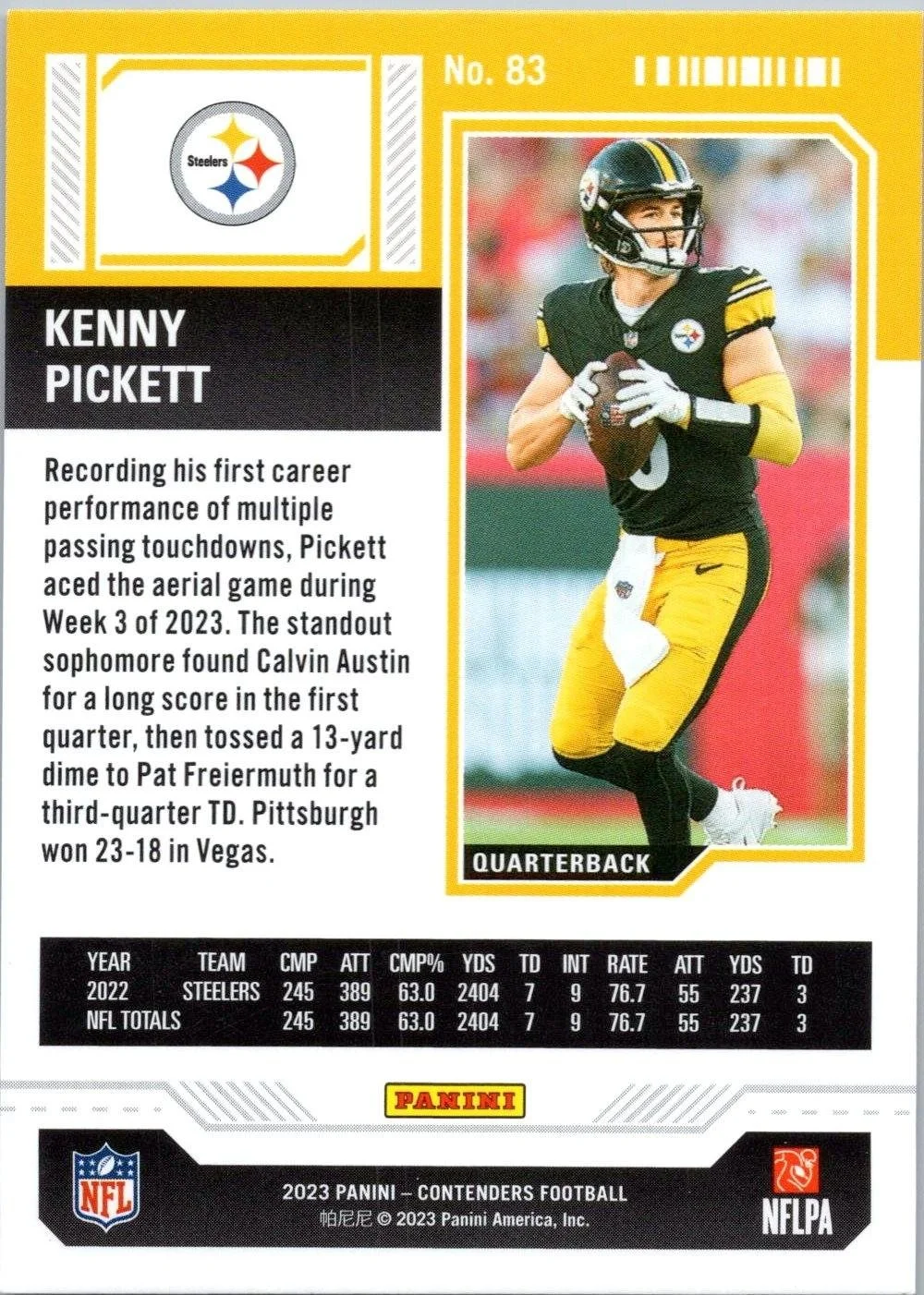 In 2023 Kenny Pickett played for the Pittsburgh Steelers.