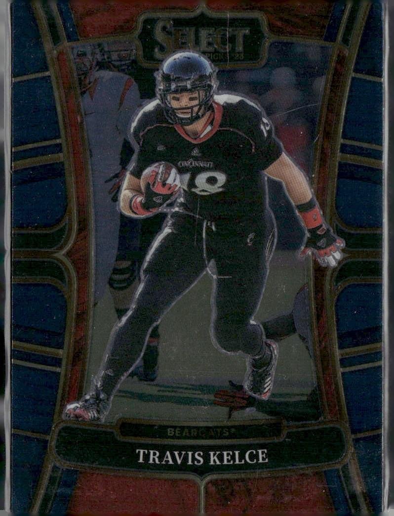 This is a nice example of a 2023 Panini Select Draft Picks #71 Travis Kelce Blue Retail
