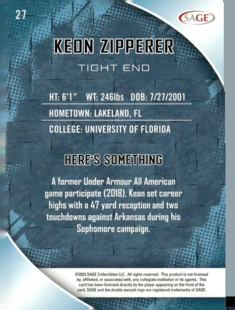 In 2023 Keon Zipperer played for the Florida Gators.
