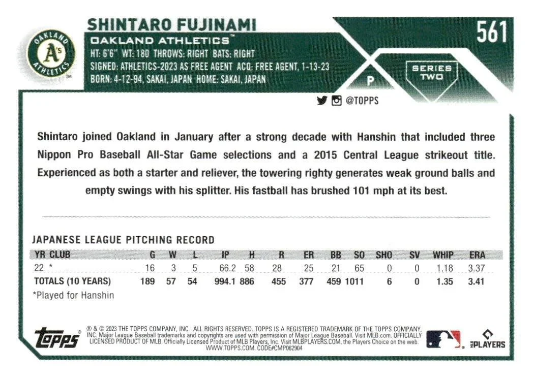This is a nice example of a 2023 Topps #561 Shintaro Fujinami