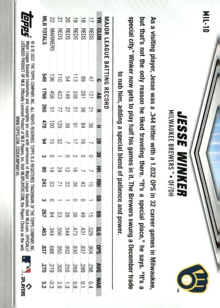 This is a nice example of a 2023 Topps International Trading Card Day Milwaukee Brewers #MIL-10 Jesse Winker