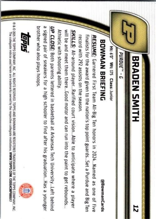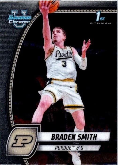 This is a nice example of a 2024-25 Bowman University Chrome #12 Braden Smith