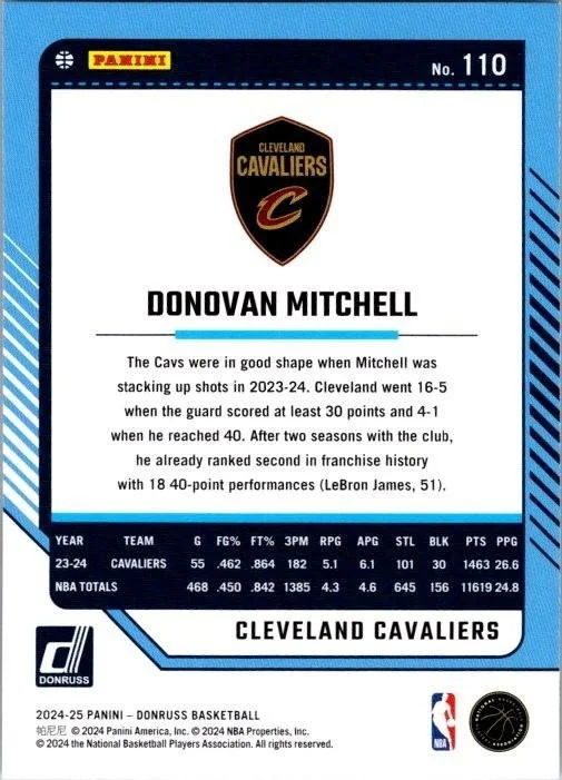 This is a nice example of a 2024-25 Donruss #110 Donovan Mitchell