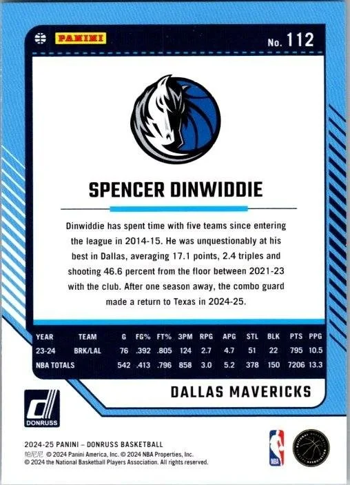 This is a nice example of a 2024-25 Donruss #112 Spencer Dinwiddie