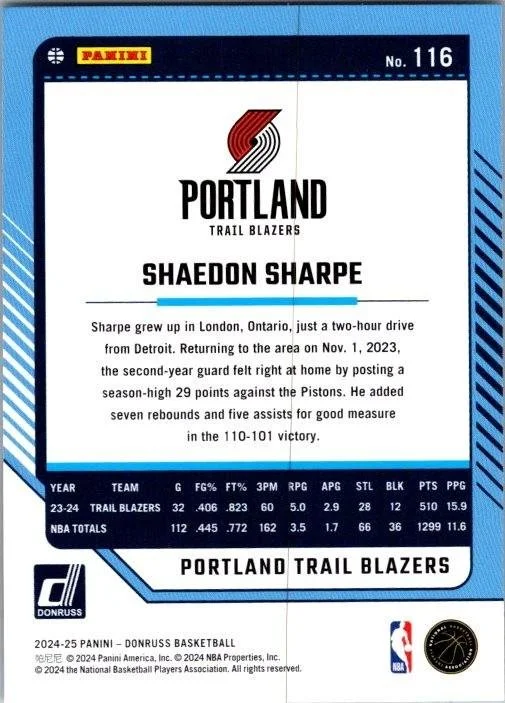 This is a nice example of a 2024-25 Donruss #116 Shaedon Sharpe