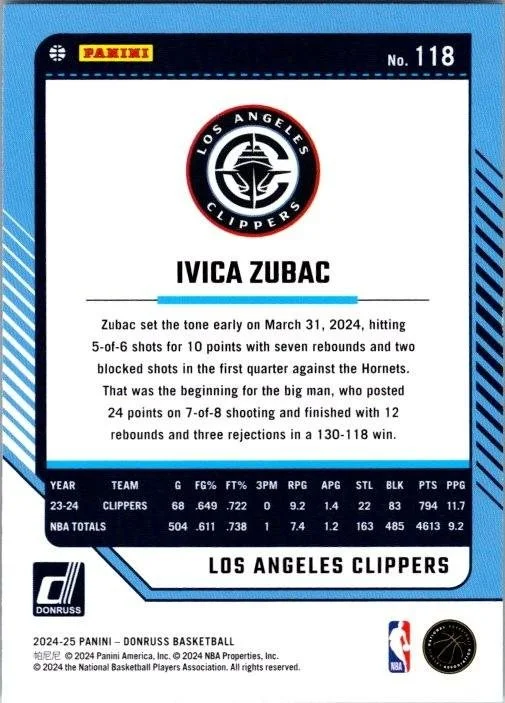 This is a nice example of a 2024-25 Donruss #118 Ivica Zubac