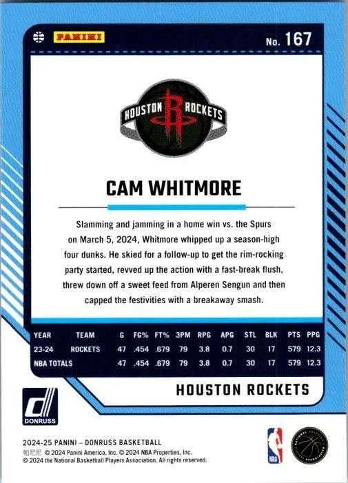 In 2024 Cam Whitmore played for the Houston Rockets.