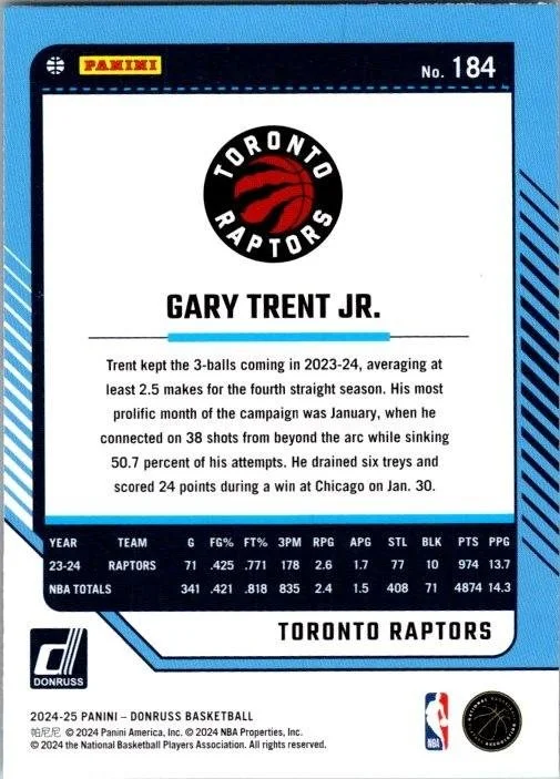 This is a nice example of a 2024-25 Donruss #184 Gary Trent Jr.
