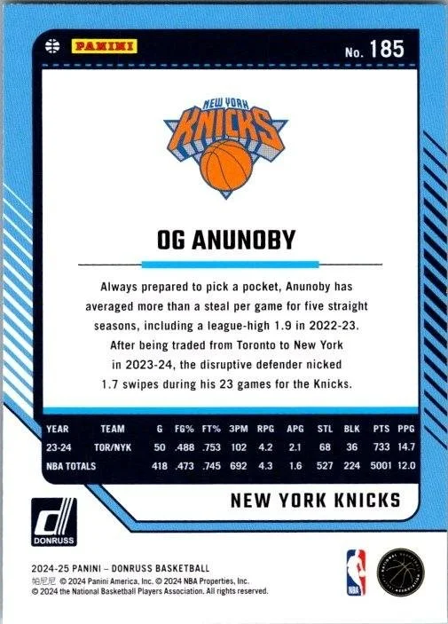 This is a nice example of a 2024-25 Donruss #185 OG Anunoby
