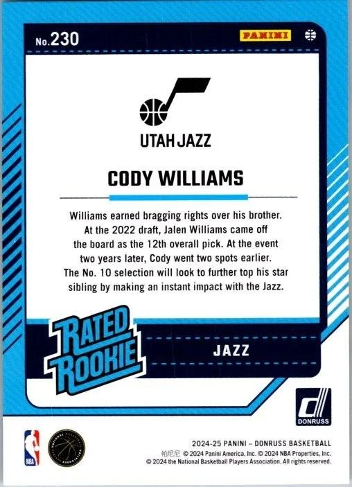 In 2024 Cody Williams played for the Utah Jazz.