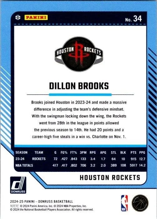 This is a nice example of a 2024-25 Donruss #34 Dillon Brooks Winter