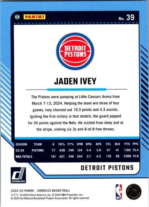 This is a nice example of a 2024-25 Donruss #39 Jaden Ivey