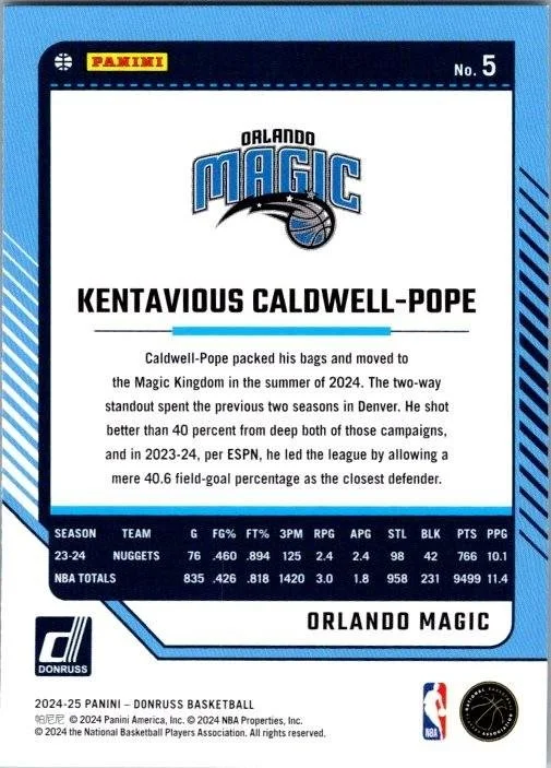 This is a nice example of a 2024-25 Donruss #5 Kentavious Caldwell-Pope