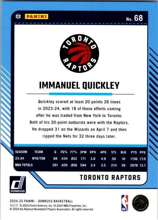This is a nice example of a 2024-25 Donruss #68 Immanuel Quickley