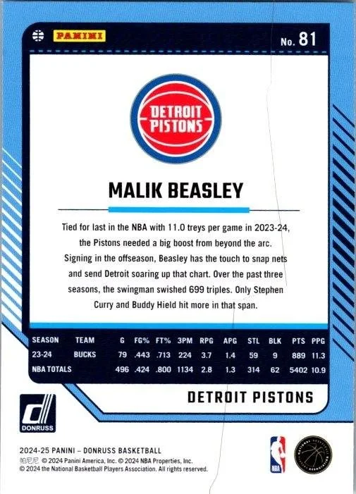 This is a nice example of a 2024-25 Donruss #81 Malik Beasley
