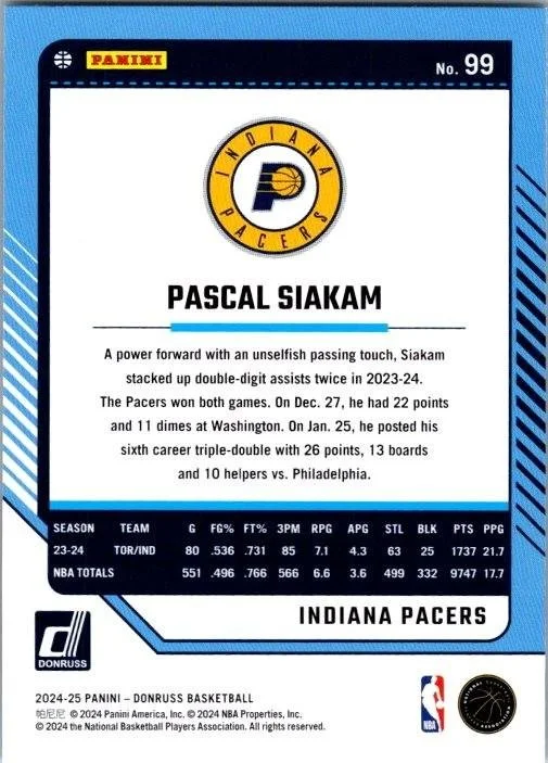 This is a nice example of a 2024-25 Donruss #99 Pascal Siakam