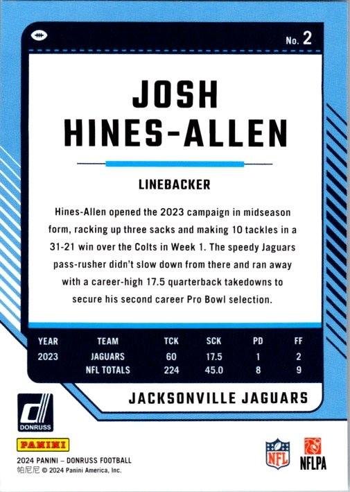 This is a nice example of a 2024 Donruss #2 Josh Hines-Allen