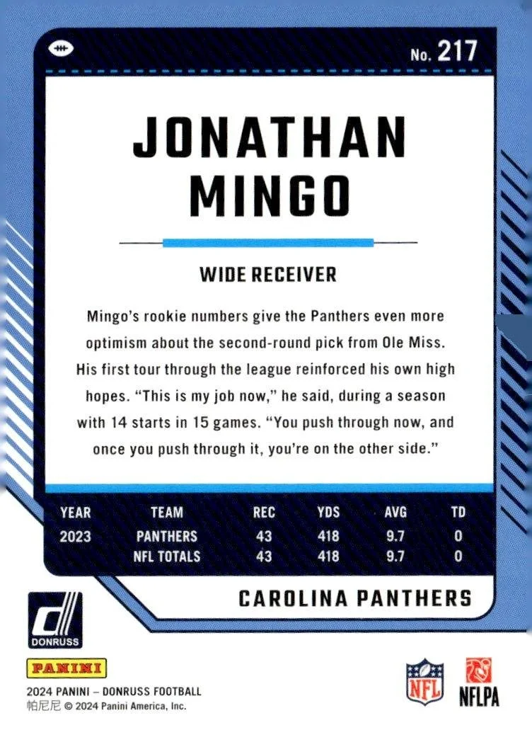 This is a nice example of a 2024 Donruss #217 Jonathan Mingo
