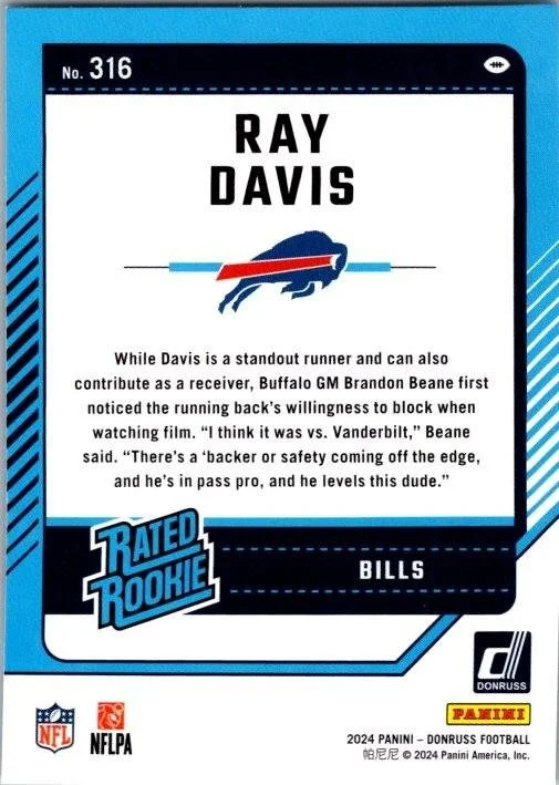 This is a nice example of a 2024 Donruss #316 Ray Davis