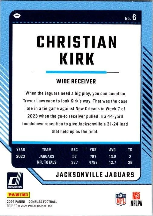 This is a nice example of a 2024 Donruss #6 Christian Kirk