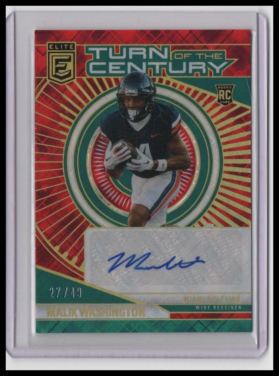 🔴 2024 Donruss Elite Malik Washington #TCA-MWA – Red Auto SN #/49 – Rookie WR for Miami Dolphins! 🔴