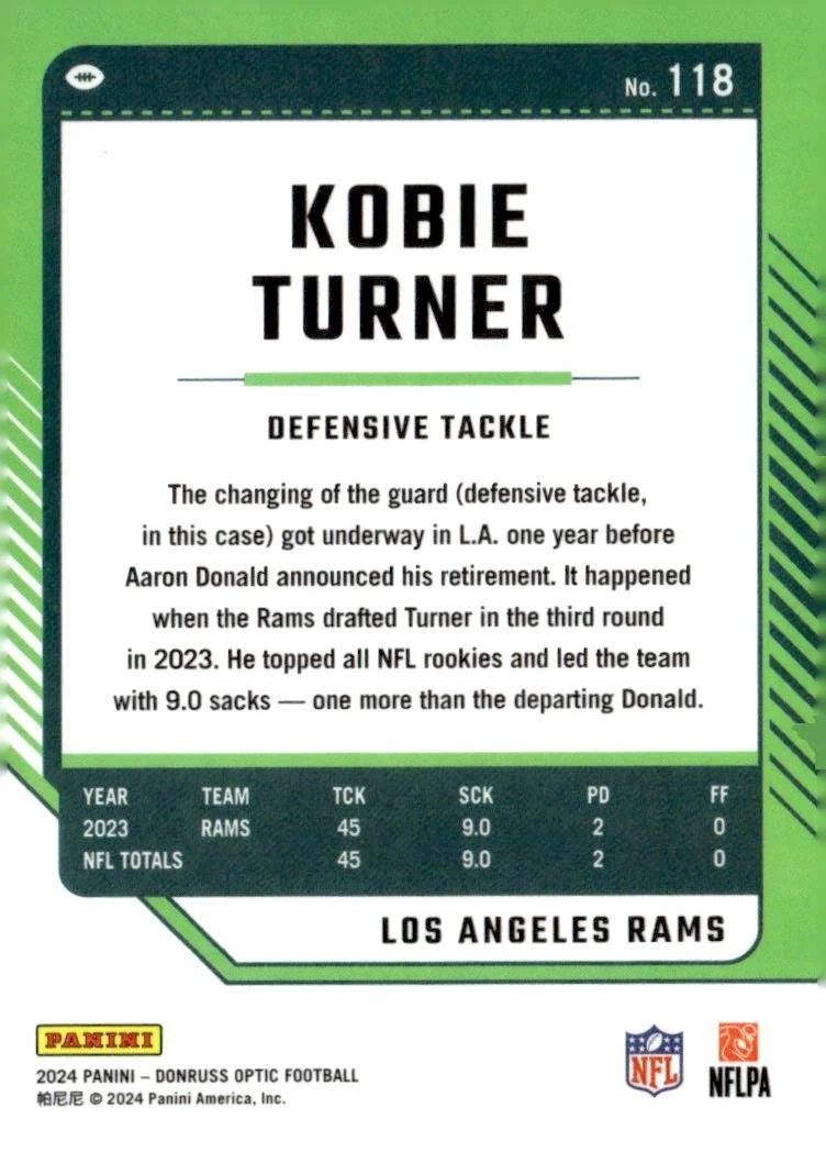 In 2024 Kobie Turner played for the Los Angeles Rams.
