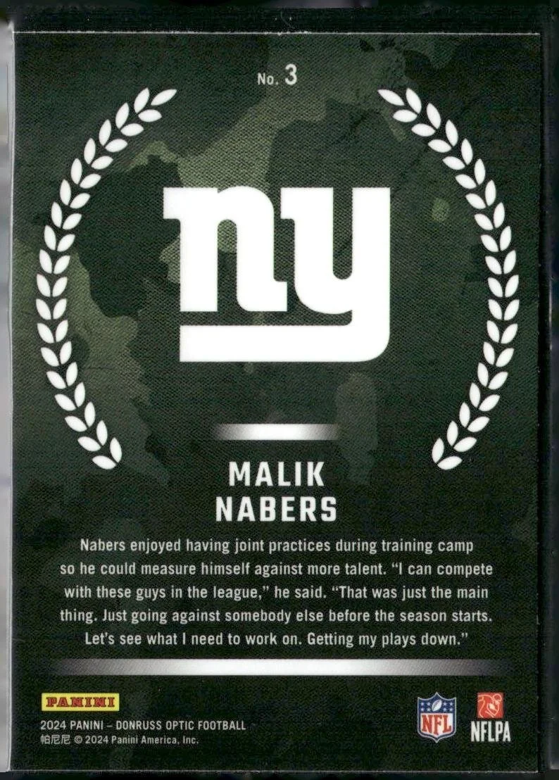 This is a nice example of a 2024 Donruss Optic #3 Malik Nabers Rookie Recruits