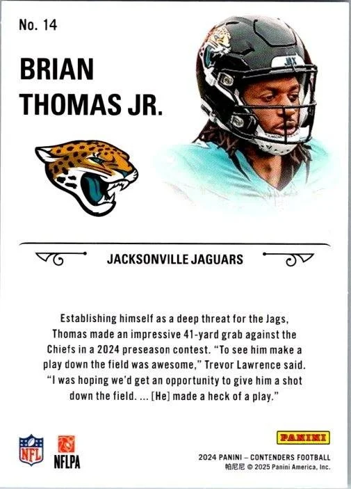 This is a nice example of a 2024 Panini Contenders #14 Brian Thomas Jr. Rookie Stallions