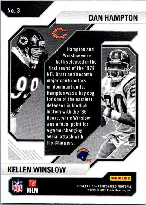 This is a nice example of a 2024 Panini Contenders #3 Dan Hampton / Kellen Winslow Historic Draft Class Contenders