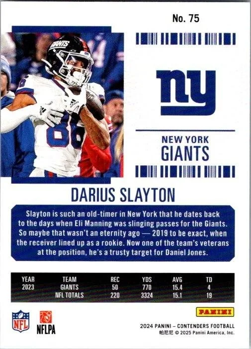 This is a nice example of a 2024 Panini Contenders #75 Darius Slayton Season Ticket Retail