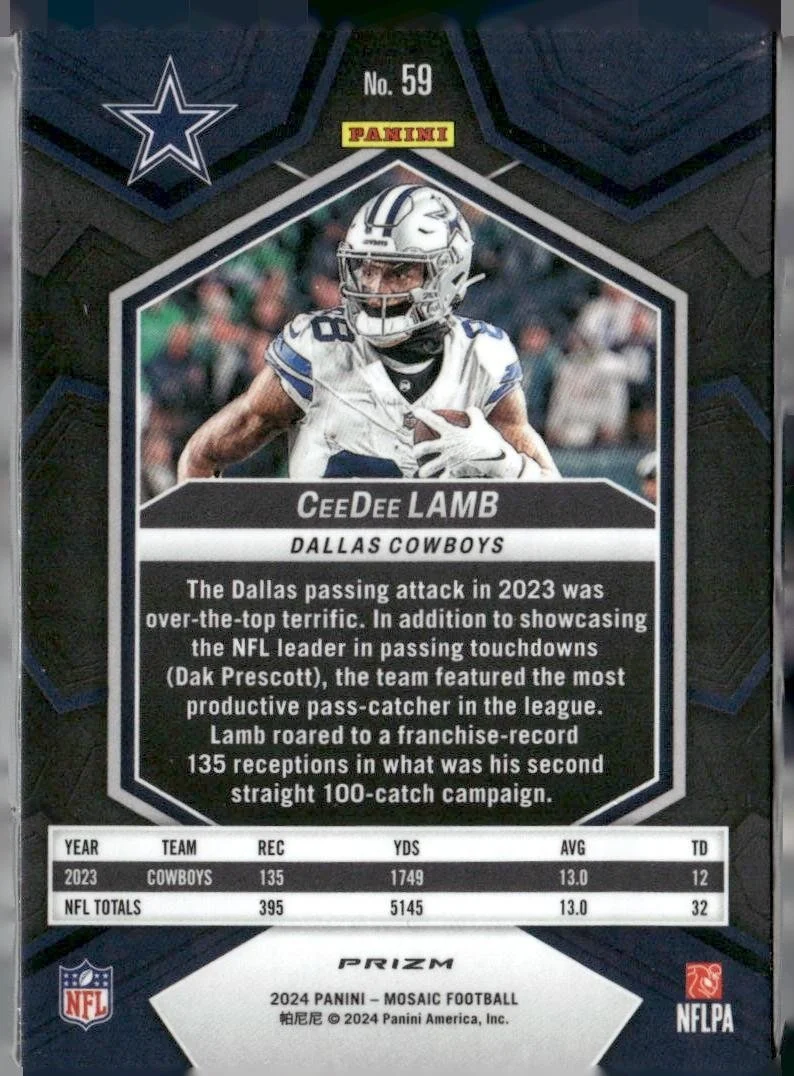 This is a nice example of a 2024 Panini Mosaic #59 CeeDee Lamb Mosaic