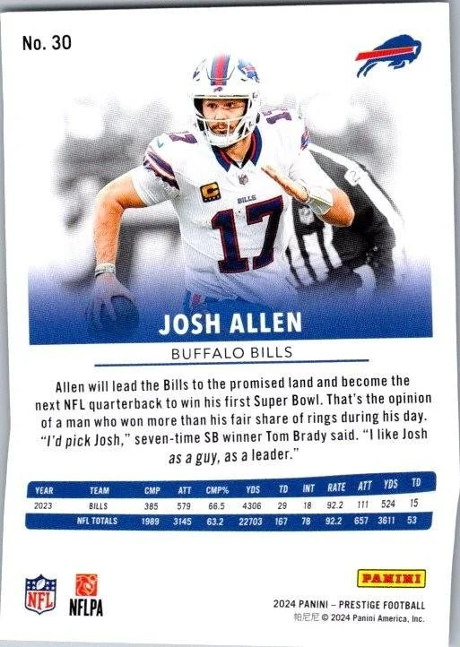 This is a nice example of a 2024 Panini Prestige #30 Josh Allen